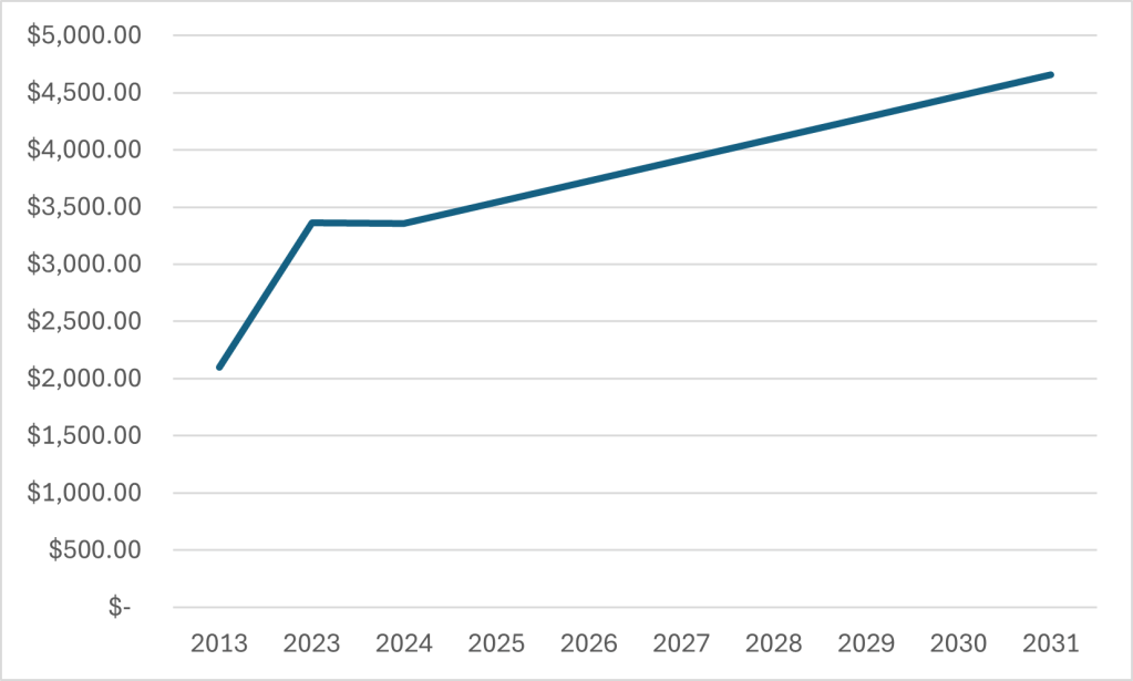 | 2013 | 2023 | 2024 | 2025 | 2026 | 2027 | 2028 | 2029 | 2030 | 2031 | |